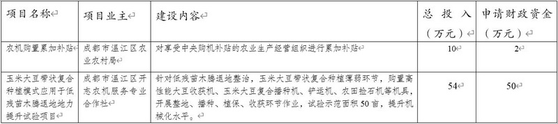 按照市农业农村局备案预审意见要求,我局对《成都市温江区2024年市级农机现代化发展项目专项资金使用方案》进行了完善,现将成都市温江区2024年市级农机现代化发展项目公示如下: