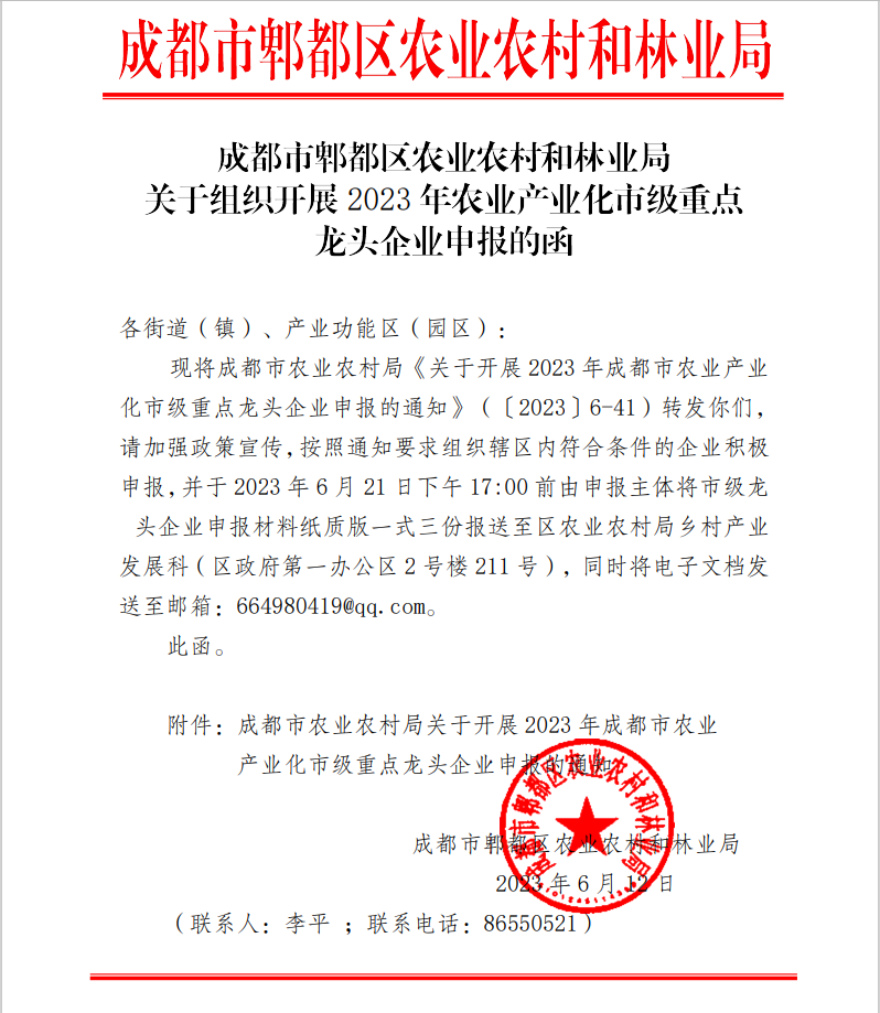 附件:6-41(产业处(关于开展2023年成都市农业产业化市级重点龙头企业申报的通知(定)